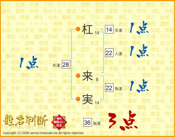 杠来実さんの地運は22画の1点!