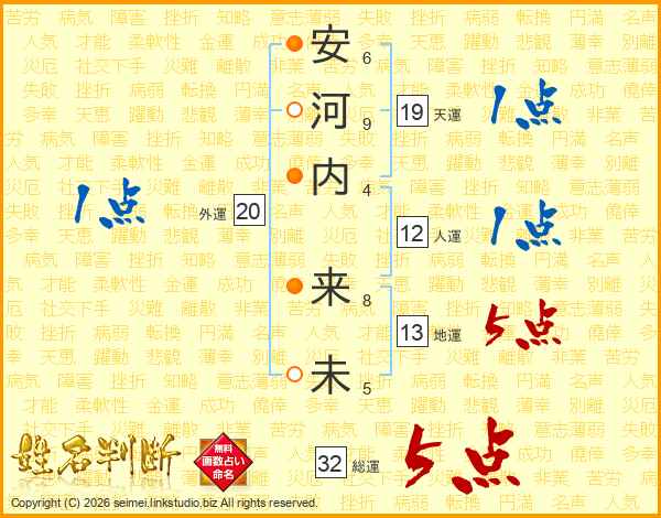 安河内来未さんの総運は32画の5点!