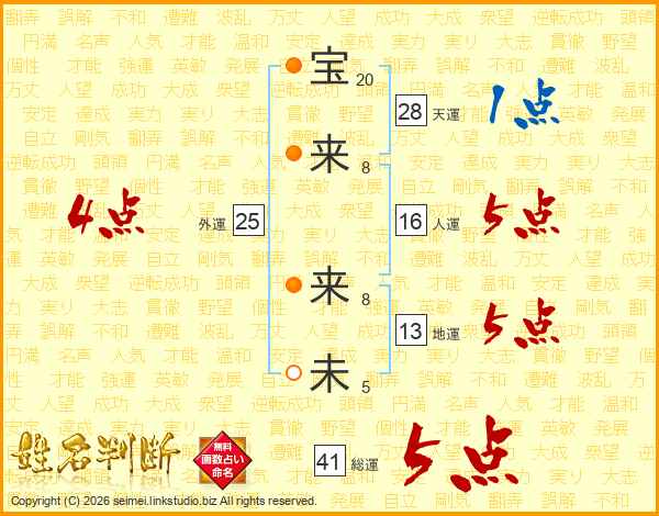 宝来来未さんの総運は41画の5点!