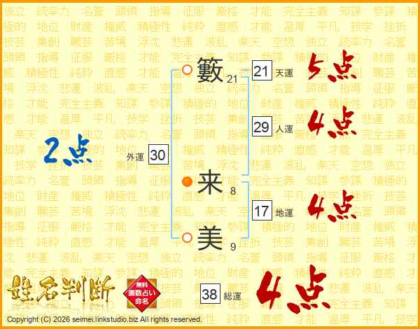 籔来美さんの総運は38画の4点!