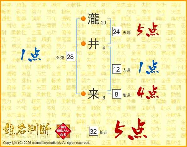 瀧井来さんの総運は32画の5点!