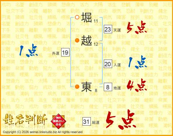 堀越東さんの天運は23画の5点!