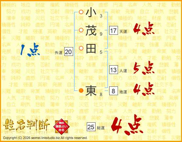 小茂田東さんの天運は17画の4点!