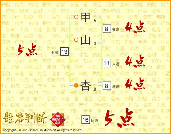 甲山杳さんの外運は13画の5点!