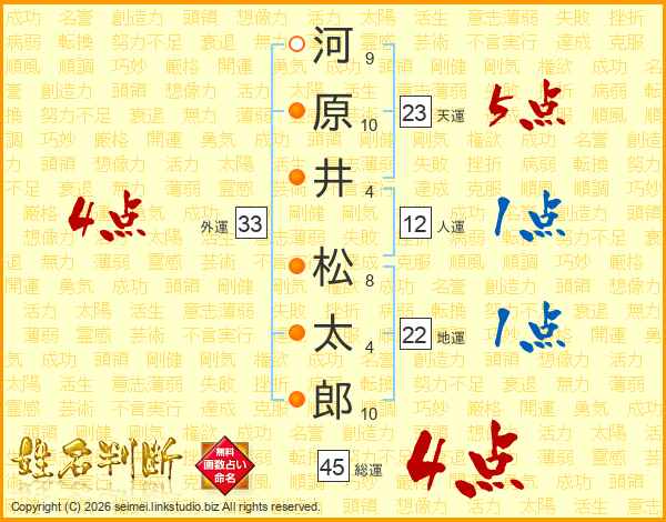 河(9画)原(10画)井(4画) 松(8画)太(4画)郎(10画)
