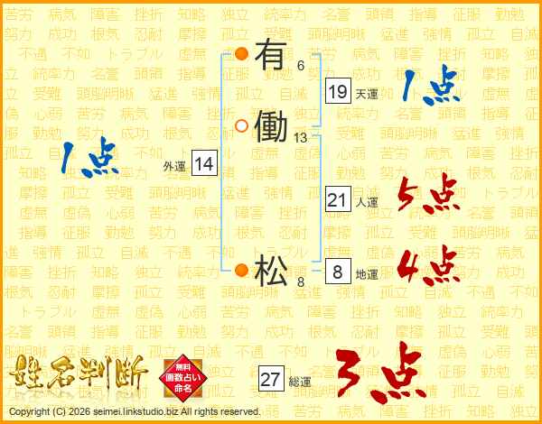 有働松さんの総運は27画の3点!
