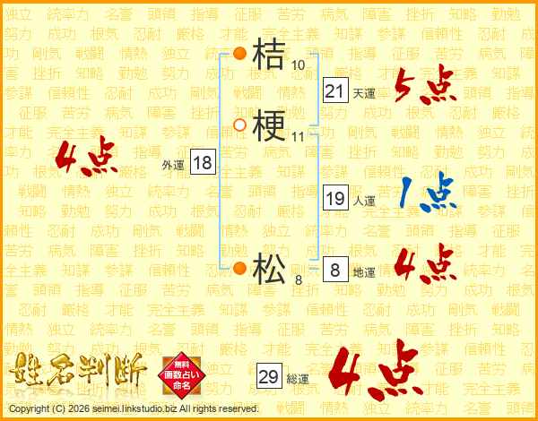 桔梗松さんの総運は29画の4点!
