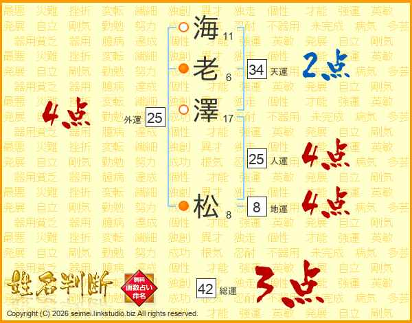 海老澤松さんの人運は25画の4点!