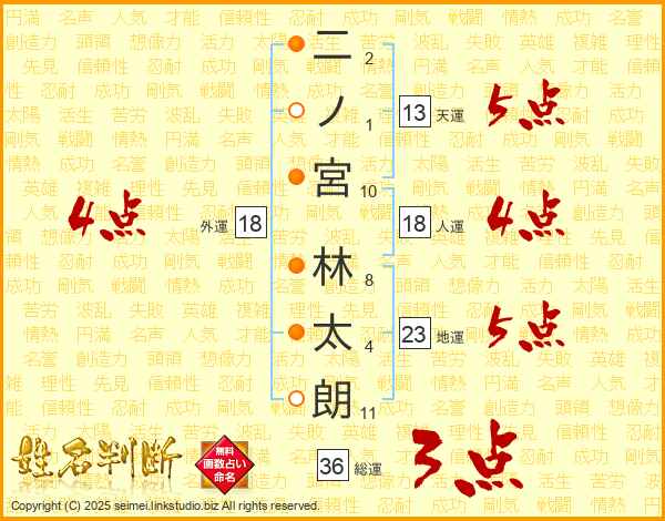 二ノ宮林太朗さんの天運は13画の5点!