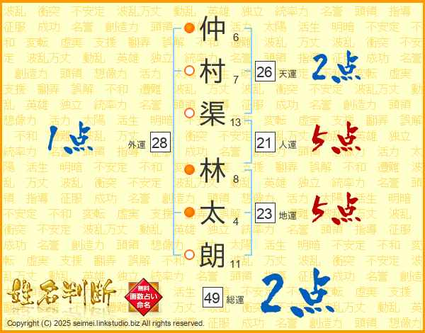 仲村渠林太朗さんの地運は23画の5点!