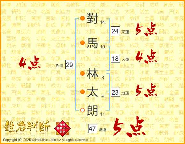 對馬林太朗さんの天運は24画の5点!