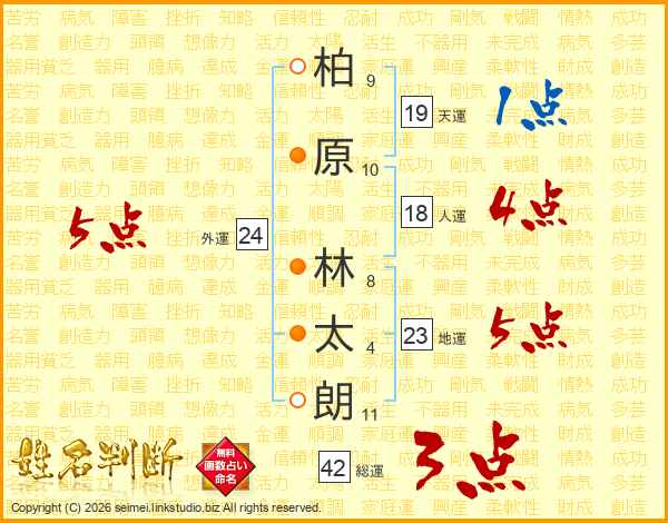 柏(9画)原(10画) 林(8画)太(4画)朗(11画)