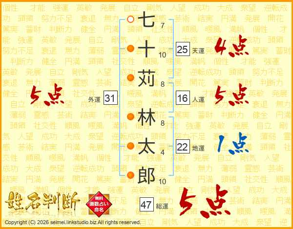 七十苅林太郎さんの総運は47画の5点!