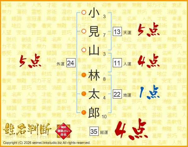 小見山林太郎さんの総運は35画の4点!