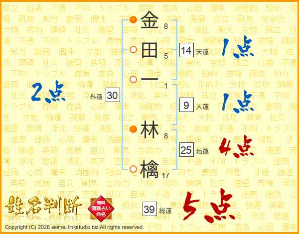 金田一林檎さんの総運は39画の5点!