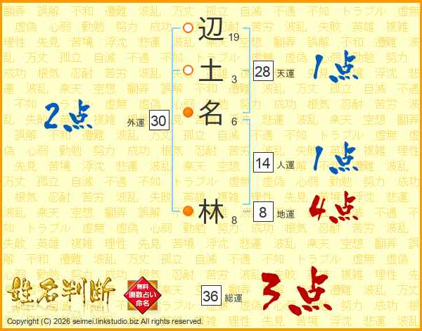 辺土名林さんの人運は14画の1点!