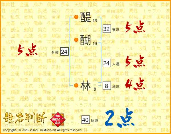 醍(16画)醐(16画) 林(8画)