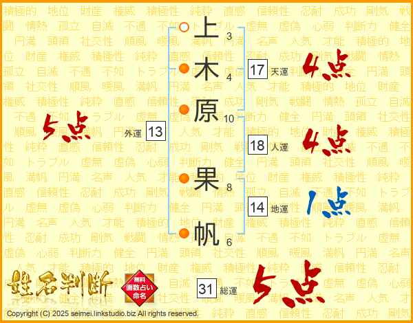 上木原果帆さんの総運は31画の5点!