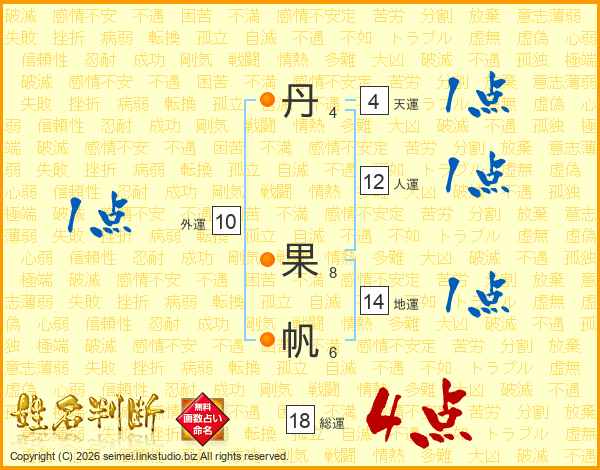 丹果帆さんの総運は18画の4点!
