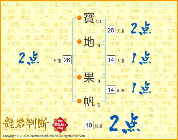 寳地果帆さんの天運は26画の2点!