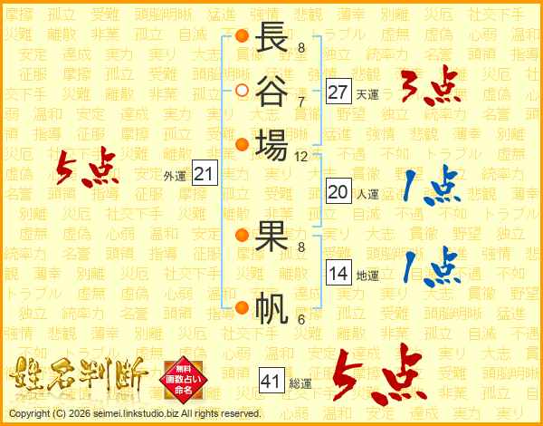 長谷場果帆さんの総運は41画の5点!