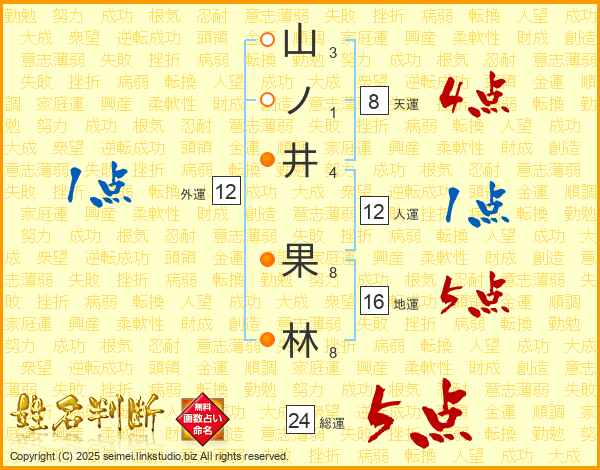 山ノ井果林さんの総運は24画の5点!