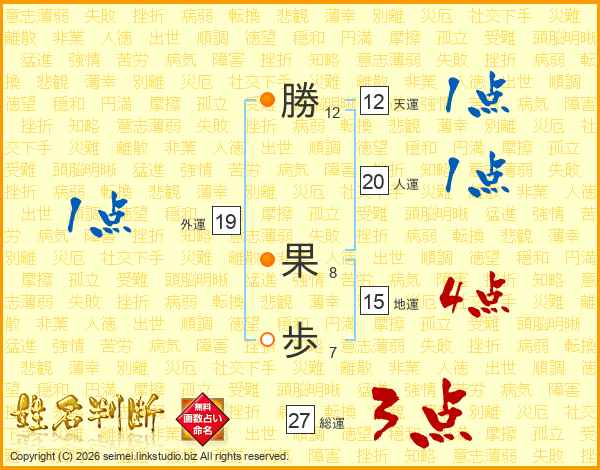 勝(12画) 果(8画)歩(7画)