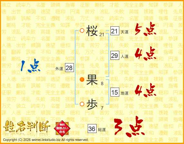 桜(21画) 果(8画)歩(7画)