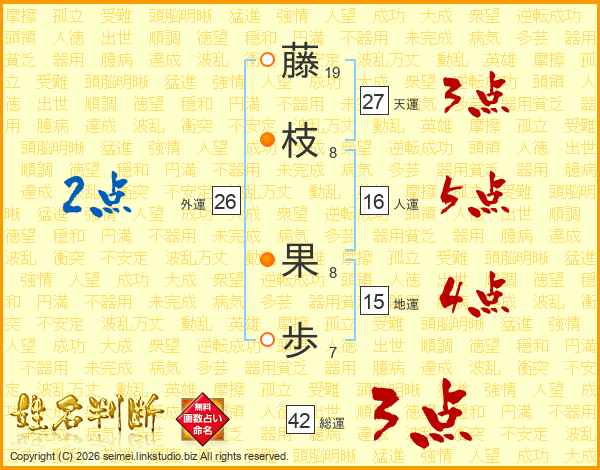 藤(19画)枝(8画) 果(8画)歩(7画)