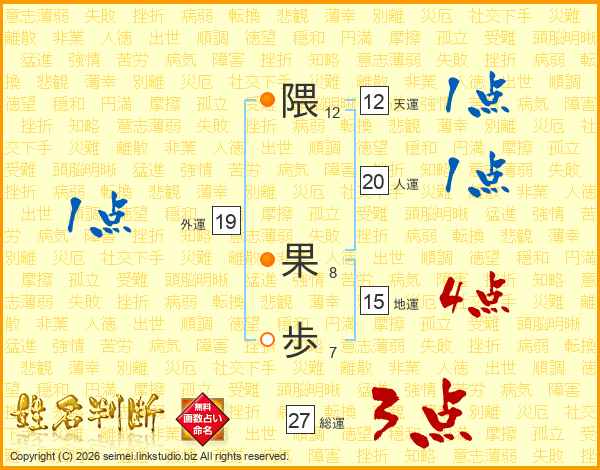 隈果歩さんの総運は27画の3点!