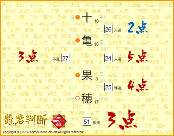 十亀果穂さんの天運は26画の2点!