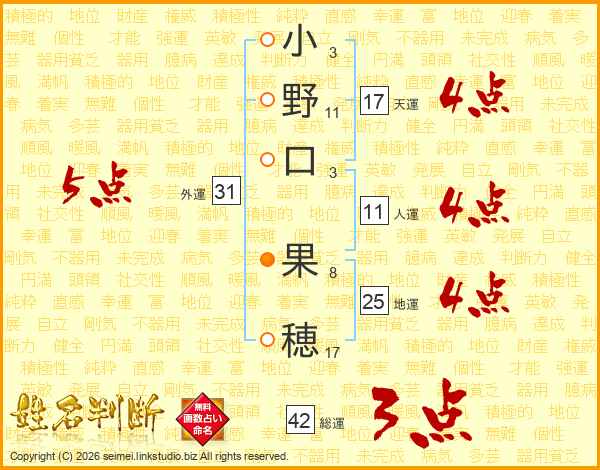 小野口果穂さんの地運は25画の4点!