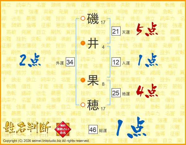 磯井果穂さんの地運は25画の4点!