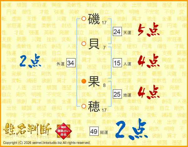 磯貝果穂さんの総運は49画の2点!