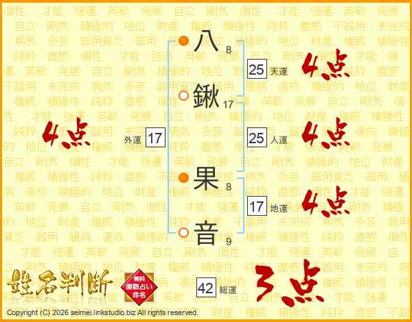 八鍬果音さんの外運は17画の4点!