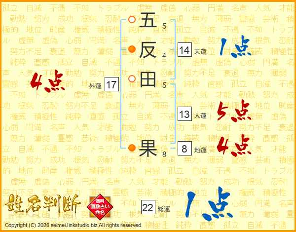 五反田果さんの外運は17画の4点!
