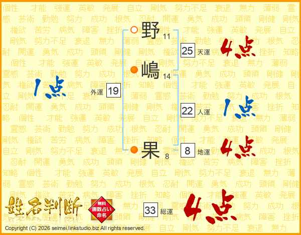 野嶋果さんの総運は33画の4点!