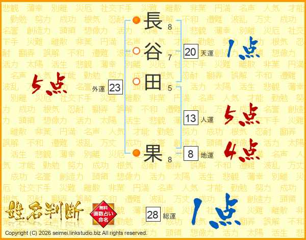 長(8画)谷(7画)田(5画) 果(8画)