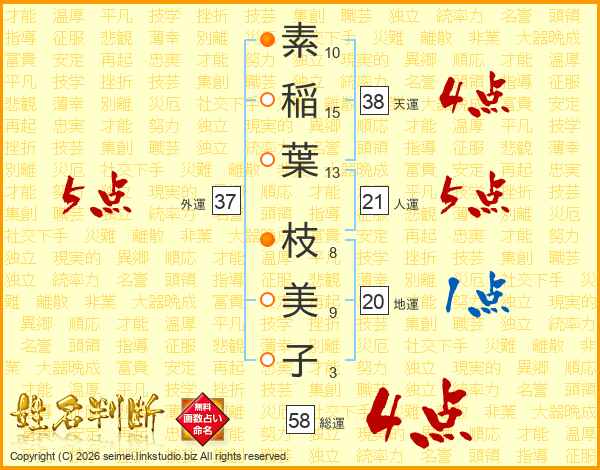 素稲葉枝美子さんの総運は58画の4点!