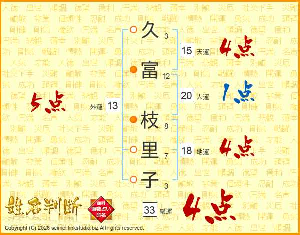 久富枝里子さんの総運は33画の4点!