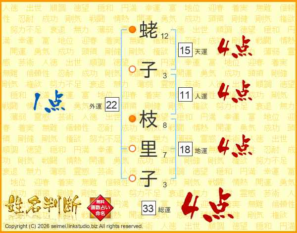 蛯子枝里子さんの総運は33画の4点!