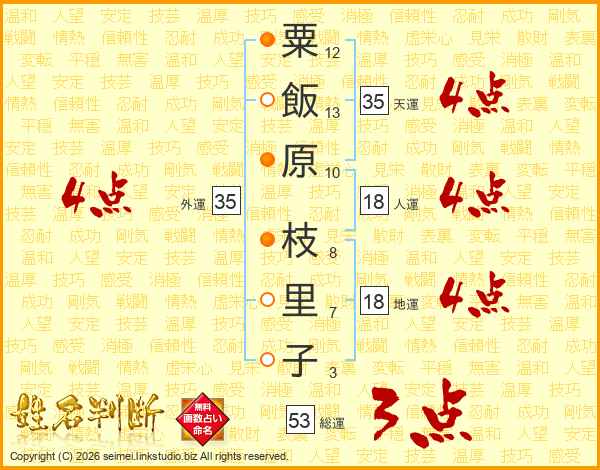 粟飯原枝里子さんの総運は53画の3点!