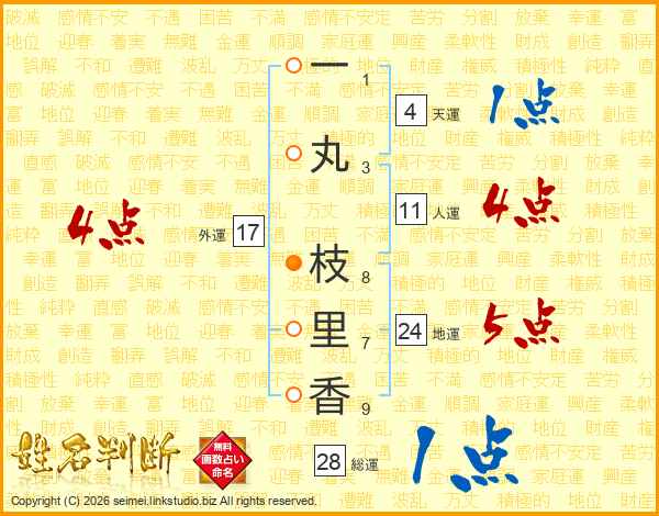 一丸枝里香さんの外運は17画の4点!