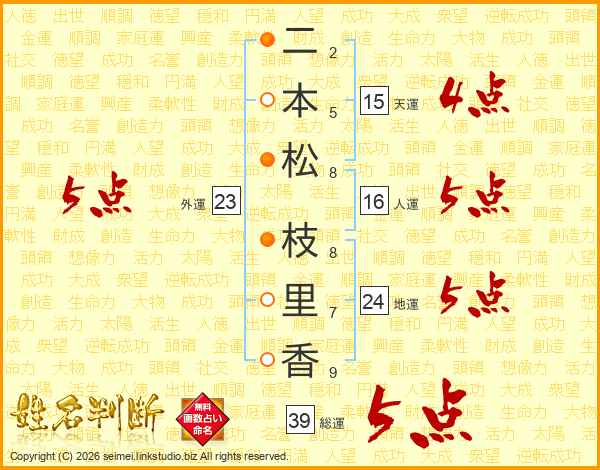 二本松枝里香さんの総運は39画の5点!