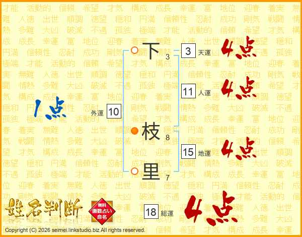 下枝里さんの総運は18画の4点!