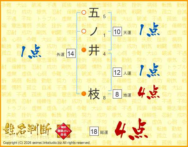 五ノ井枝さんの総運は18画の4点