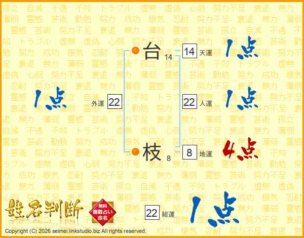 台枝さんの人運は22画の1点!