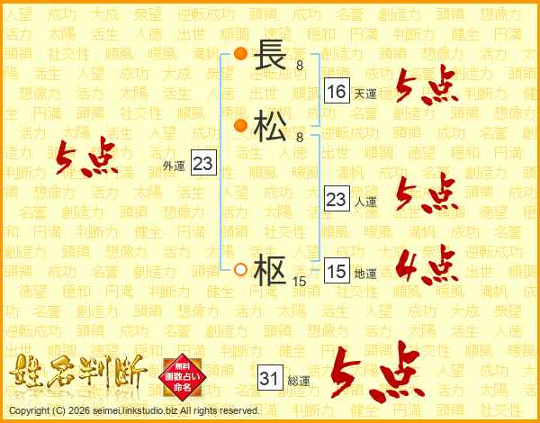 長(8画)松(8画) 枢(15画)