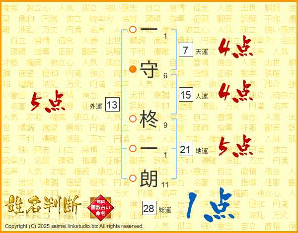 一守柊一朗さんの外運は13画の5点!