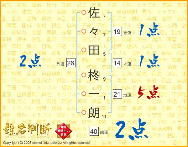 佐々田柊一朗さんの総運は40画の2点!